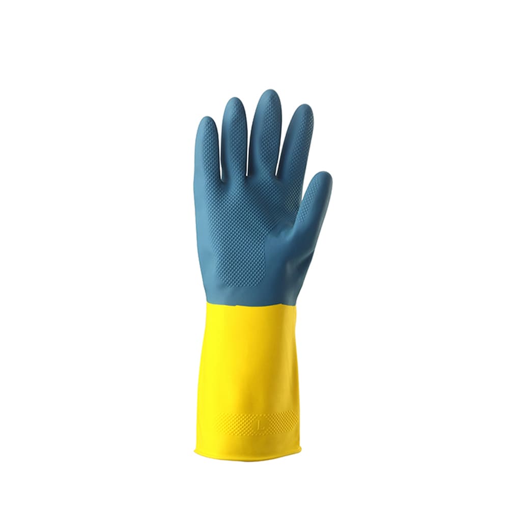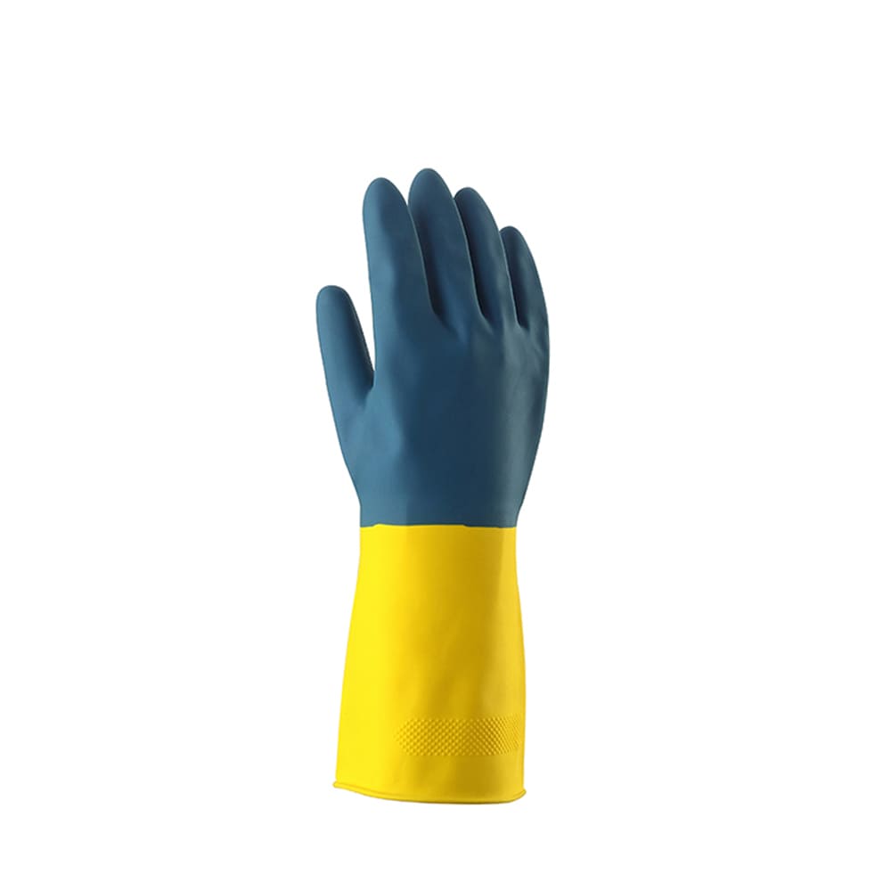 The blue-and-yellow design makes these cleaning rubber gloves easy to spot in kitchens, cars, toolboxes, fishing boats, or work sites. The colors also help you check glove wear or damage quickly.