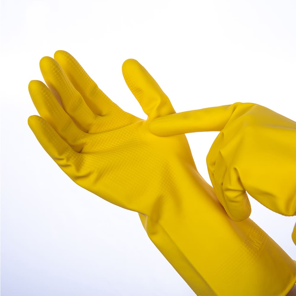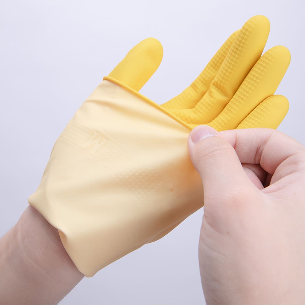 These dishwashing gloves use a smooth flock liner that feels soft on your skin. Unlike powder-lined gloves that leave dust on your hands, the dipped flock lining keeps your hands dry and comfortable even during long dishwashing or deep cleaning. The natural latex fits well and lets your hands move easily, so you can wash dishes, clean bathrooms, or work in the garden without feeling tired.