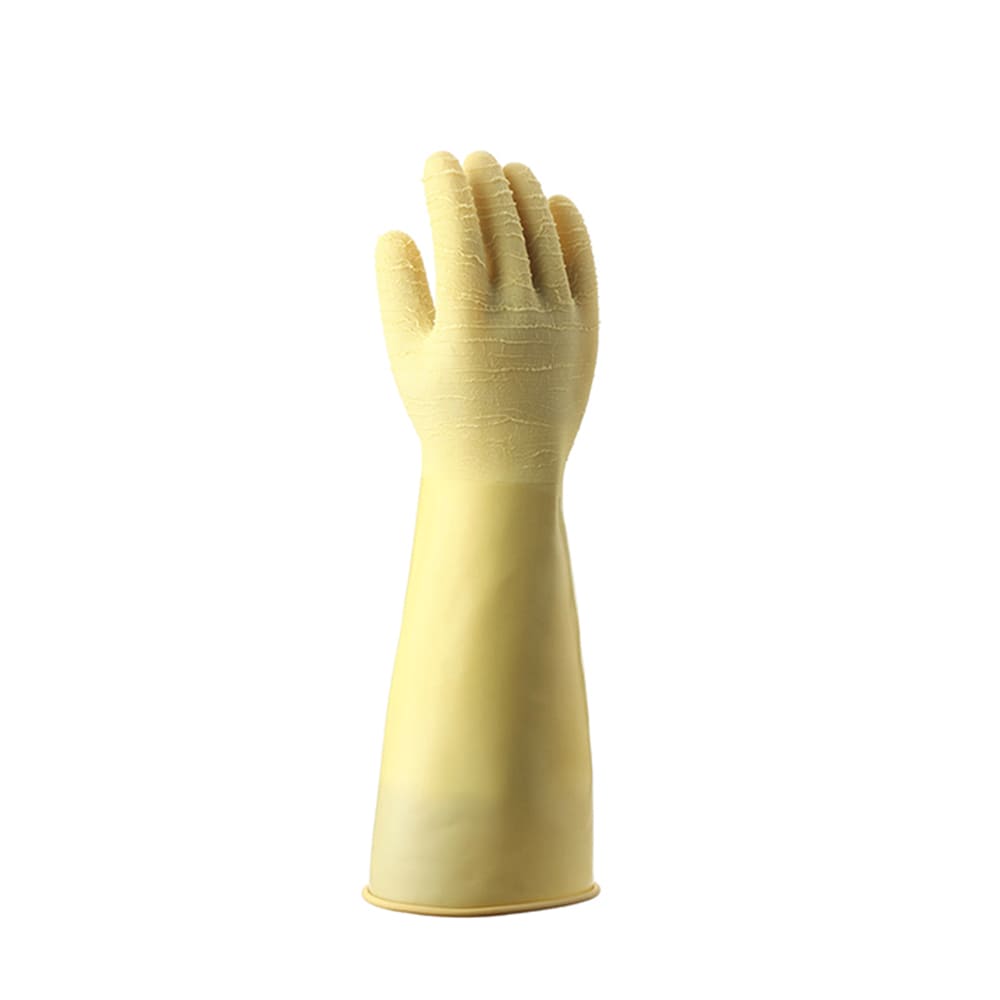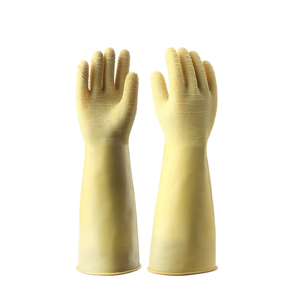 These Extreme Thick natural latex gloves give workers safe and strong hand protection in hard industrial jobs. Made from real natural latex with an extra-thick build, they help protect your hands from sharp edges, heavy tools, oils, and strong chemicals. These gloves keep both hands and arms safe when facing splash, dirt, or liquid hazards in tanning, auto work, and chemical plants.