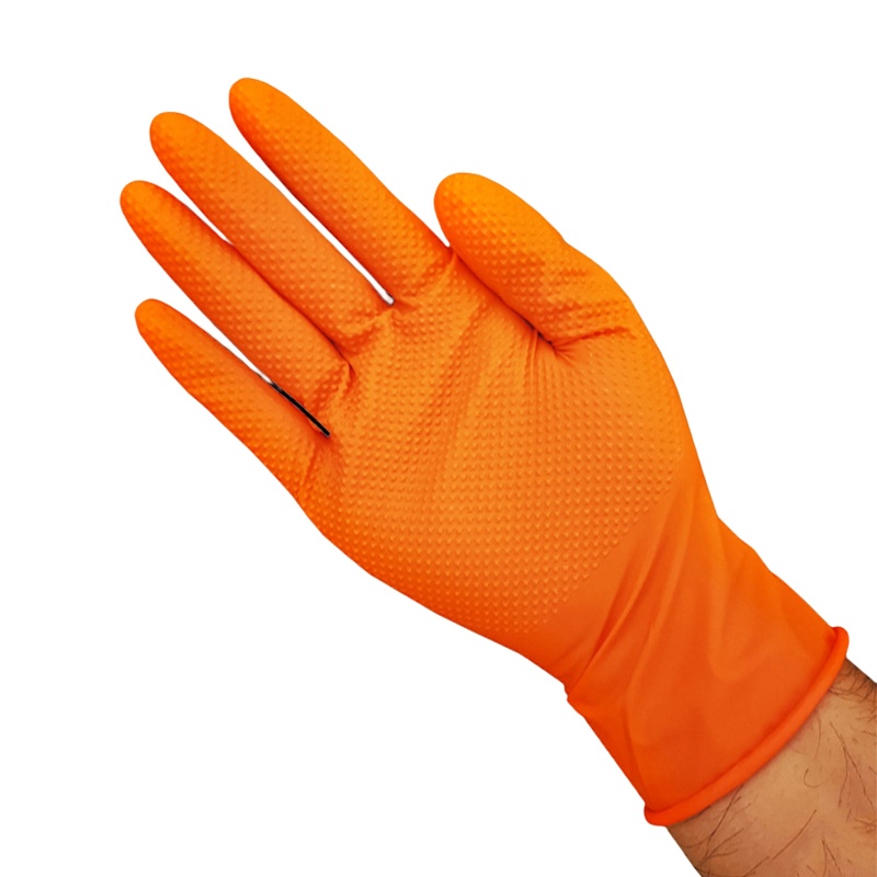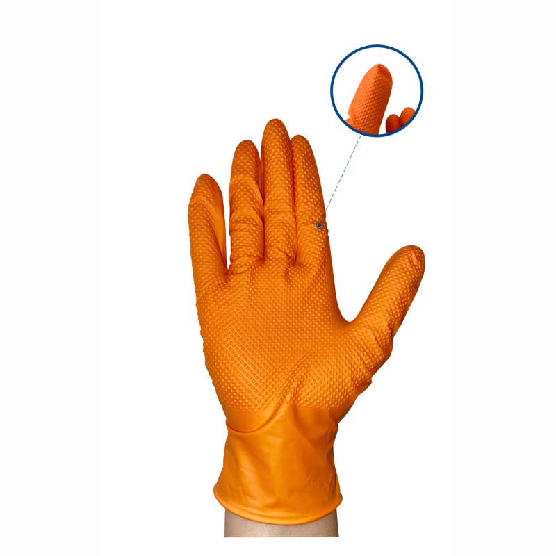 8mil Industrial Orange Disposable Nitrile Gloves Diamond Grip Pattern, Heavy Duty, Anti-Slip, Puncture Resistant Work Use Gloves for Automotive, Cleaning, Food Handling